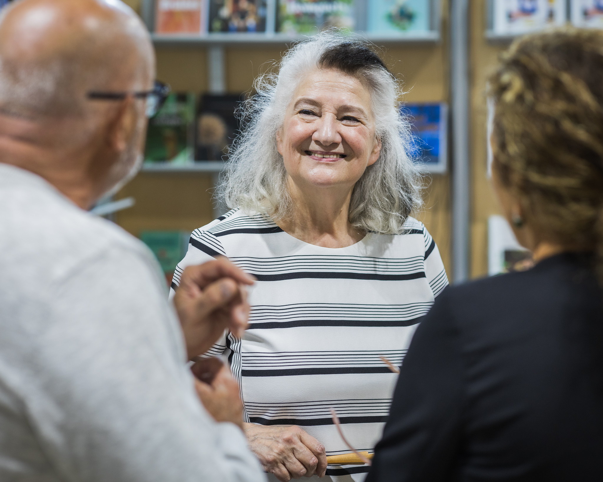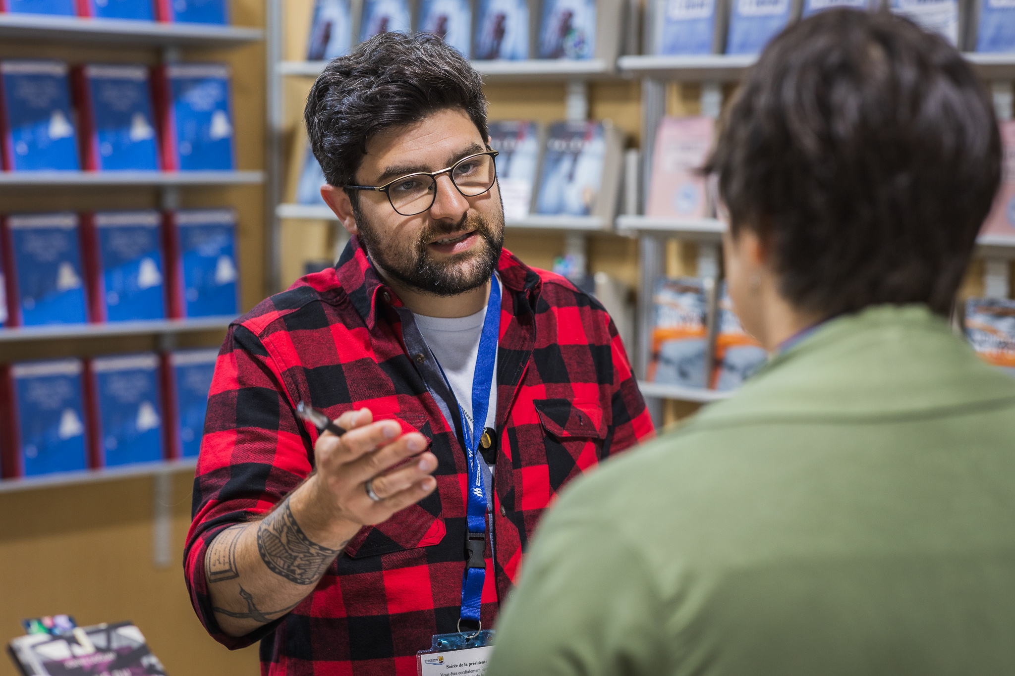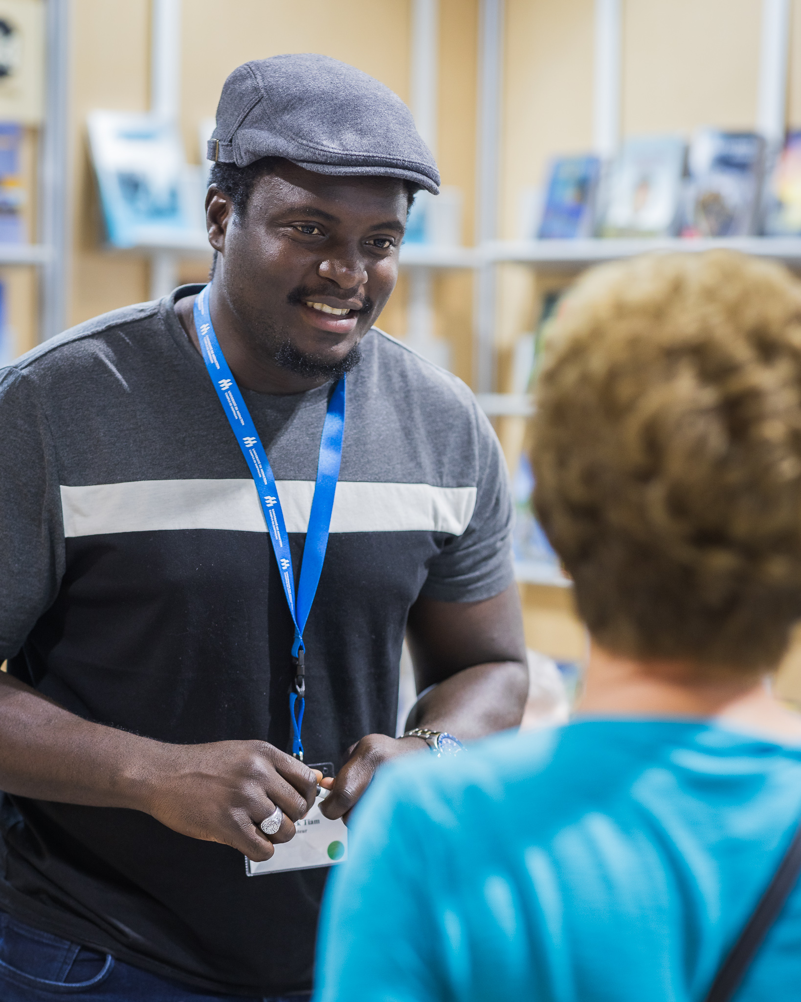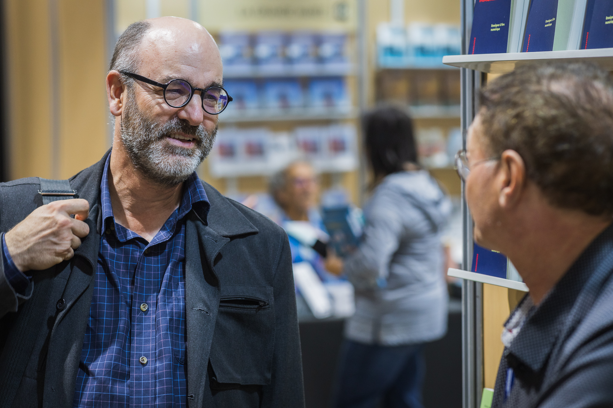 Le personnel des bibliothèques scolaires et publiques visite le site des exposants.