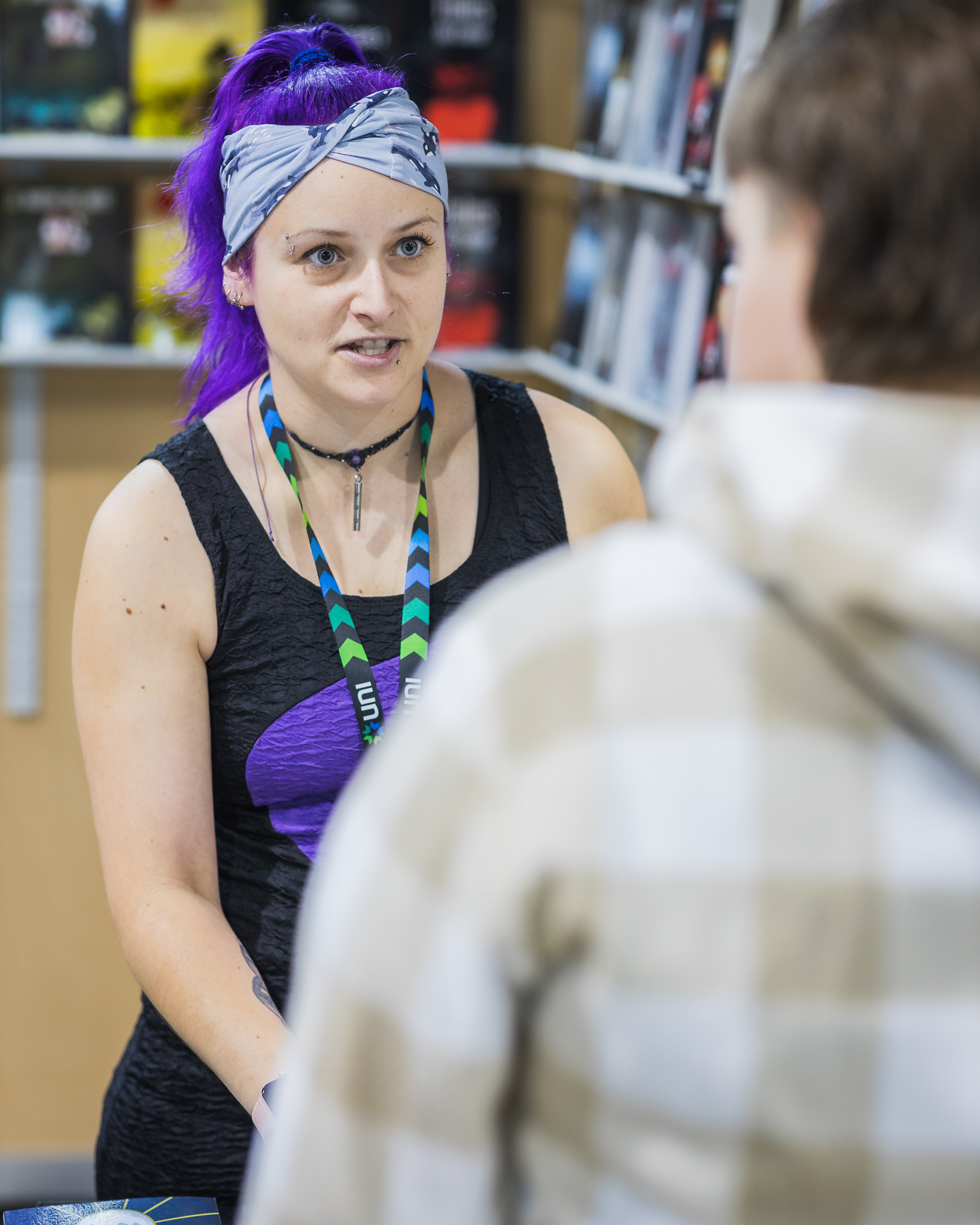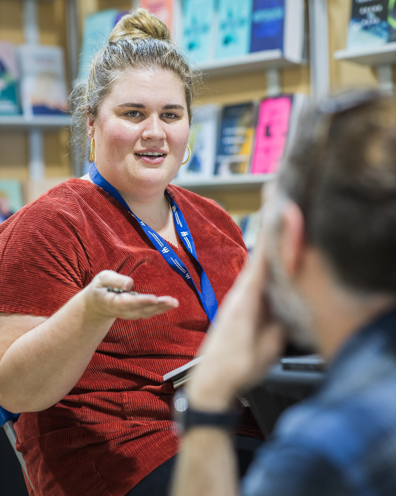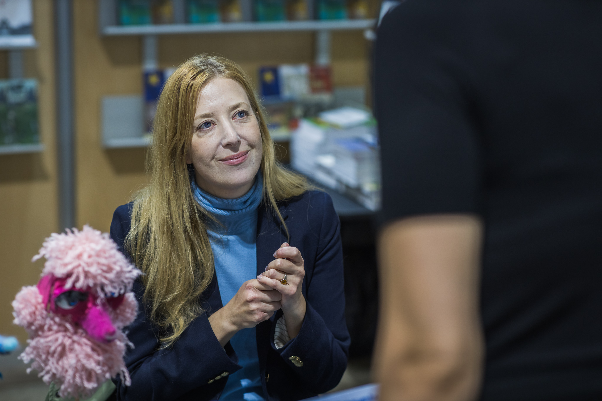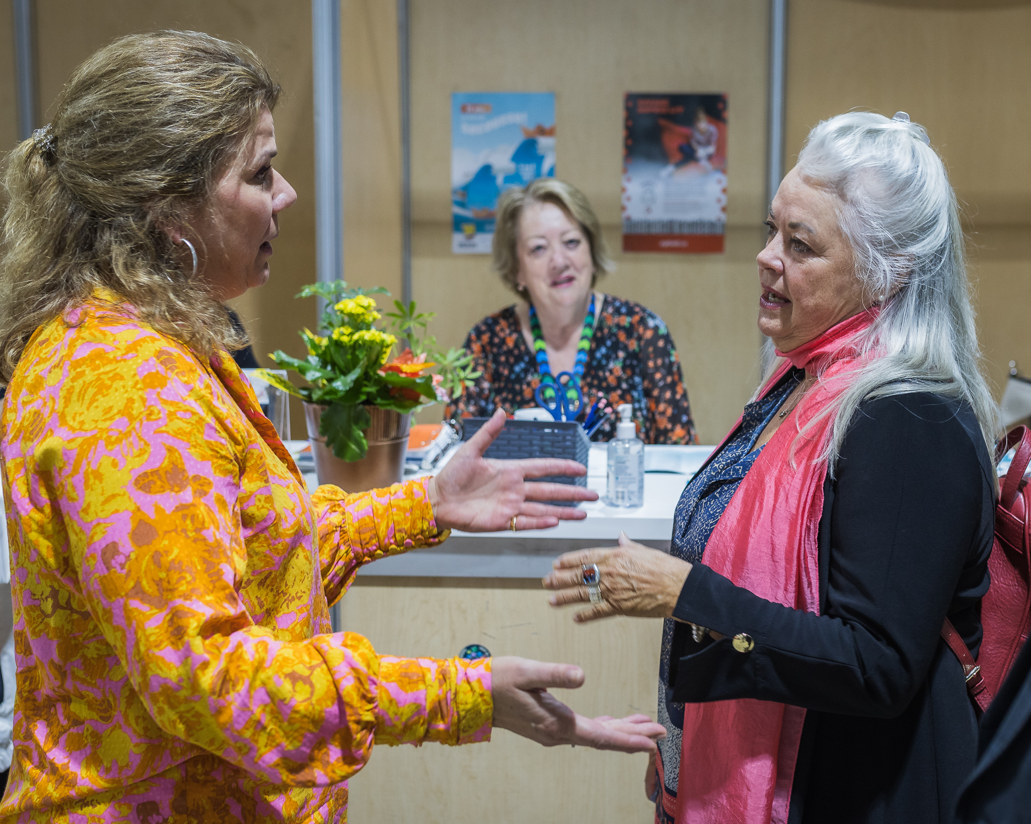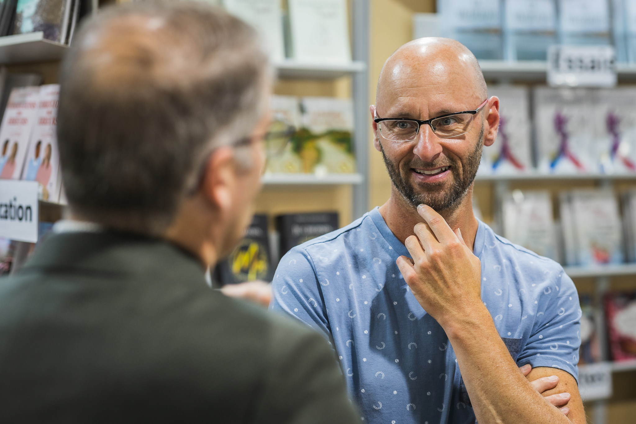 Le personnel des bibliothèques scolaires et publiques visite le site des exposants.