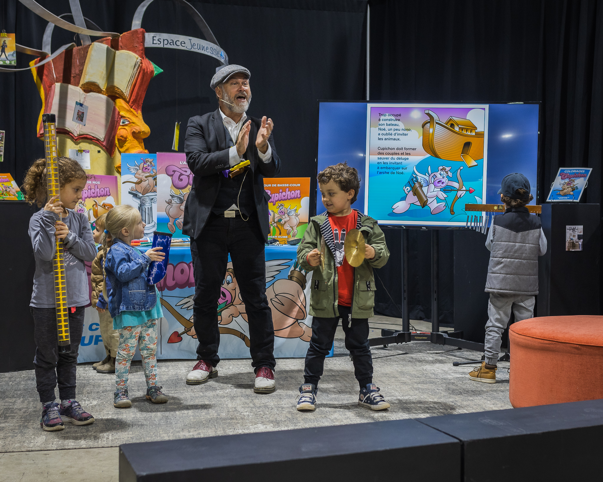 Le printemps est finalement arrivé sur la ferme de Mathurin. Après avoir été confinés dans la grange tout l’hiver, les animaux ont le moral dans les talons. Cupichon doit ramener la bonne humeur en formant des couples et transformer leurs soupirs en sourires. Roger Dubé transforme les enfants en bruiteurs dans ce conte interactif et atelier d’éveil musical!